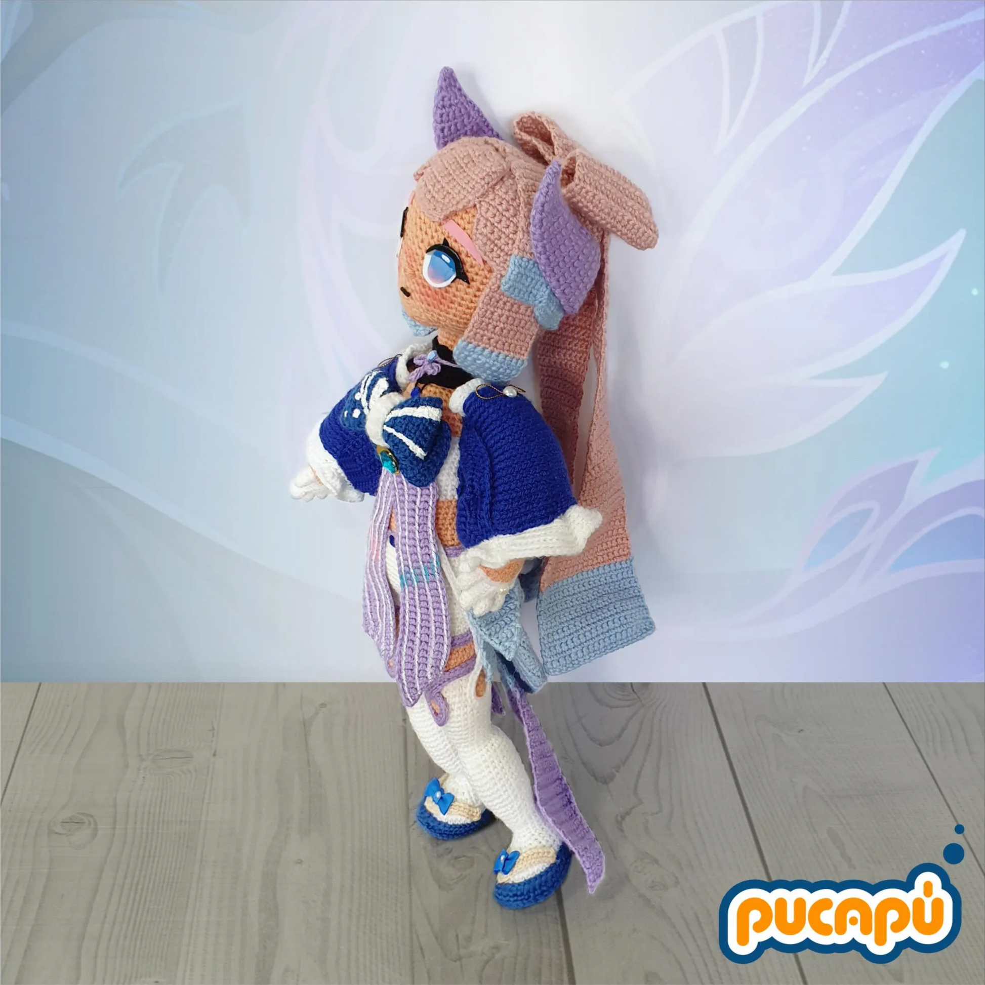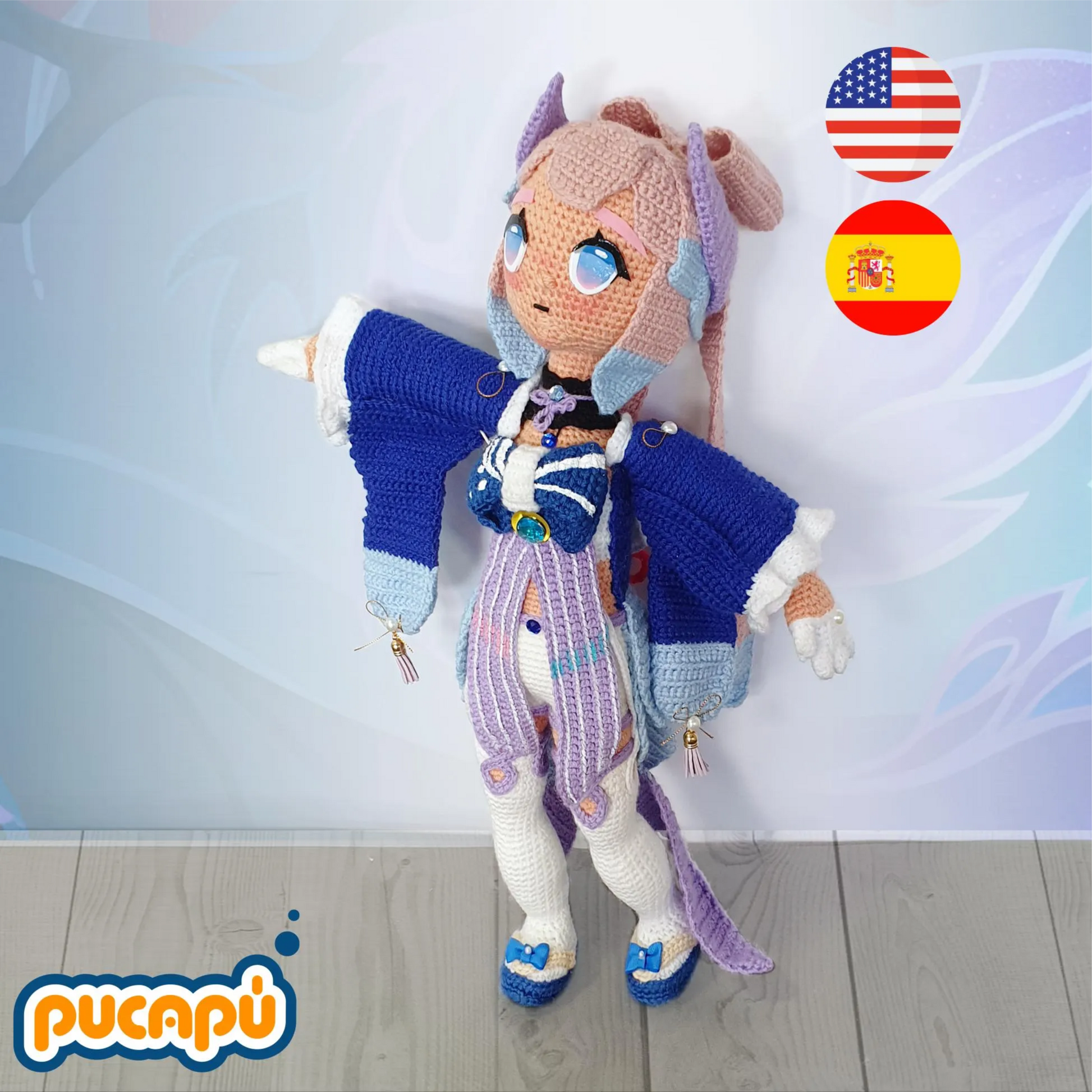 Crea tu propia versión de **Kokomi**, la carismática Sacerdotisa Divina, con este **patrón descargable en PDF**. Perfecto para fans de **Genshin Impact** y amantes del crochet.